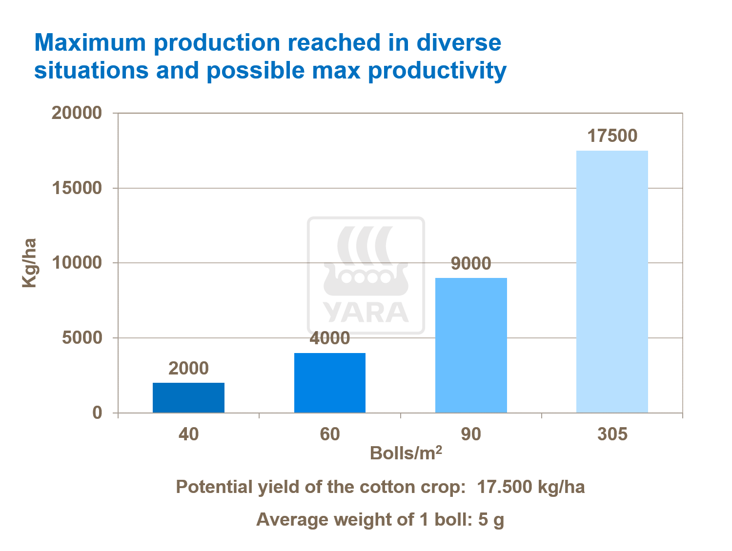 Nitrógeno prolonga la fase de crecimiento de la planta e incrementa el número de cápsulas cuajadas. Nitrógeno puede también incrementar el tamaño de las cápsulas (peso de semillas de algodón por cápsula). Este efecto es relativamente menor que el efecto en el número de cápsulas y ocurre normalmente a través de un incremento de peso individual de semillas a costa del porcentaje de pelusa.