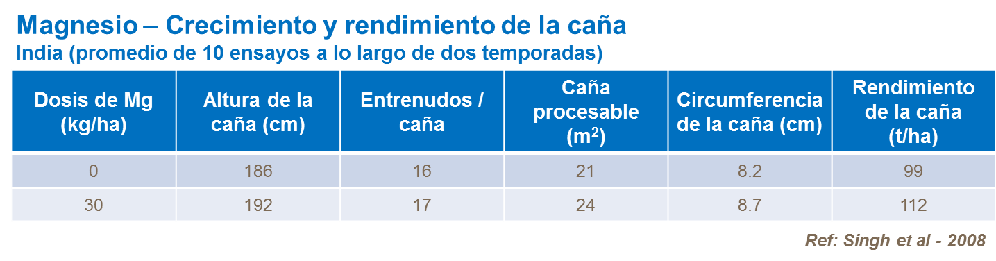 El suministro de magnesio ayuda en mantener el contenido de sacarosa en la caña por fomentar la síntesis de proteínas. El suministro de magnesio también influye en el azúcar y el contenido de sacarosa se reduce donde nutrición de magnesio esté inadecuado.
