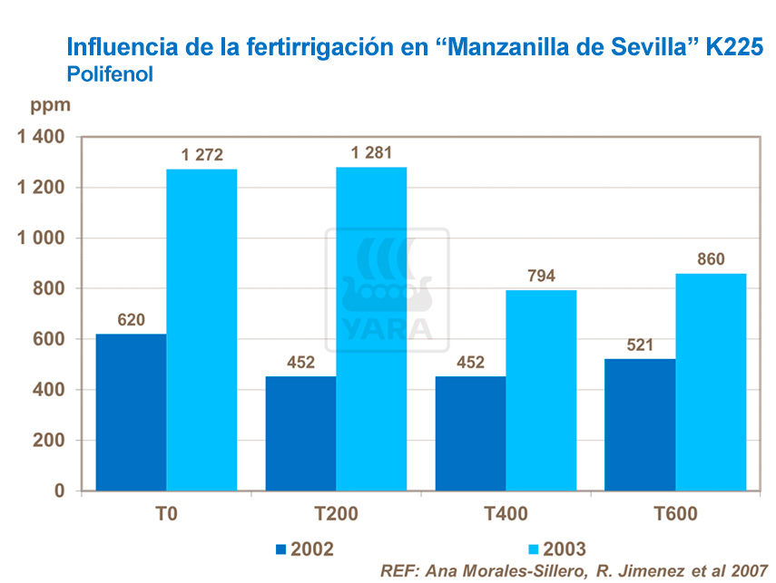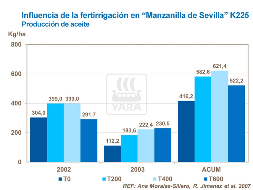 Un estudio en un olivar de "Manzanilla de Sevilla" en la provincia de Sevilla se llevó a cabo para estudiar cómo influyen los diferentes tratamientos de fertirrigación en la composición química del aceite de oliva.